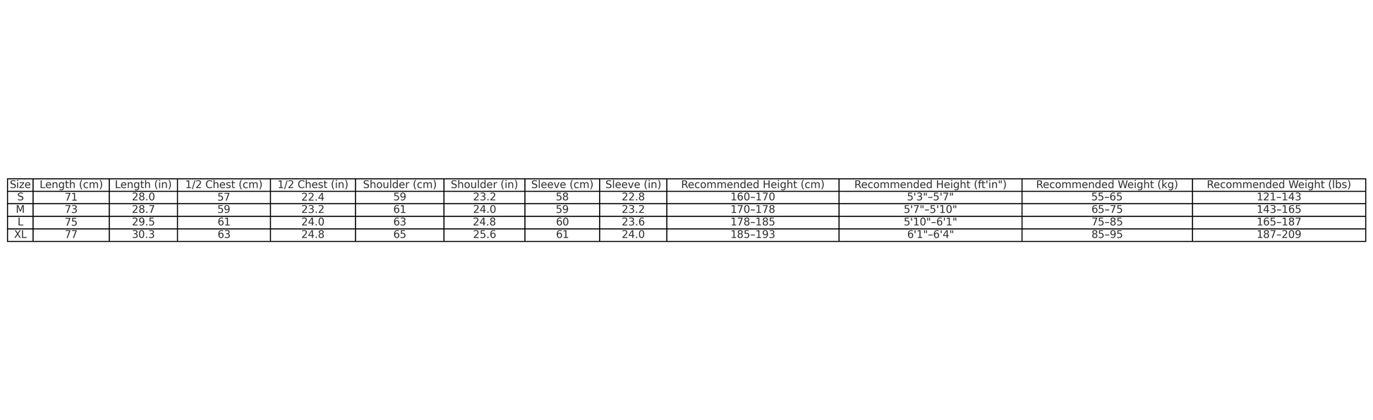 Le tableau des tailles pour cet article se trouve dans la dernière image de la galerie de produits.