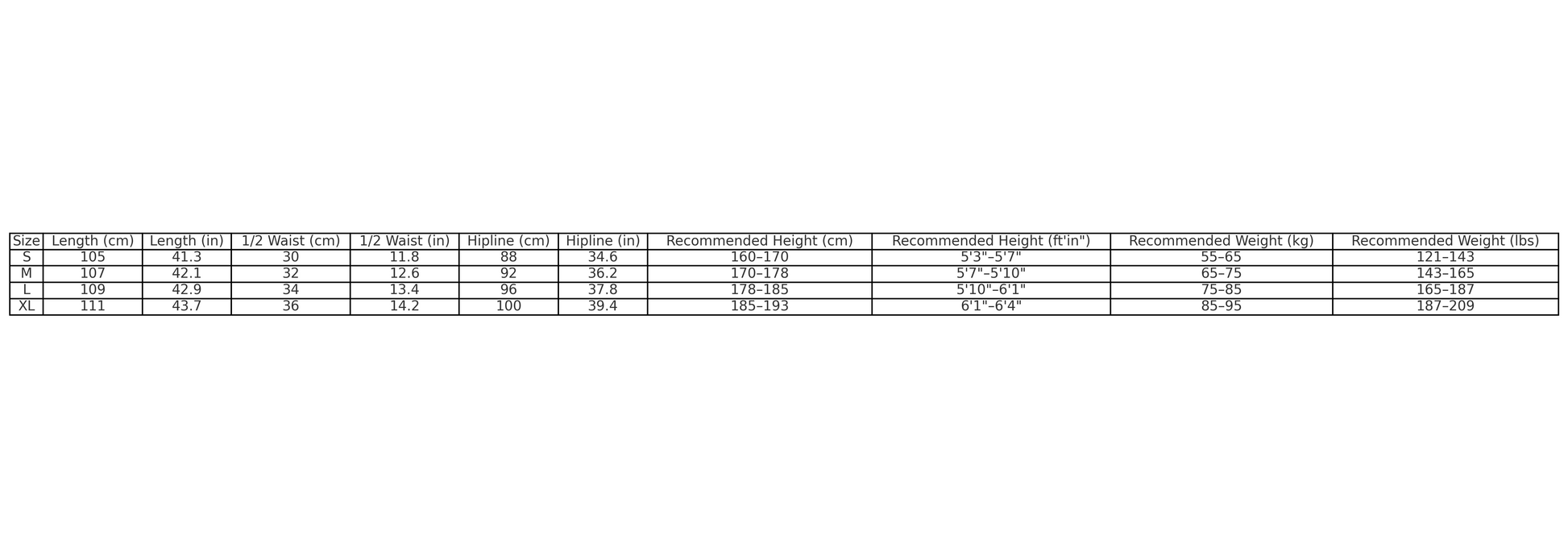 Le tableau des tailles pour cet article se trouve dans la dernière image de la galerie de produits.