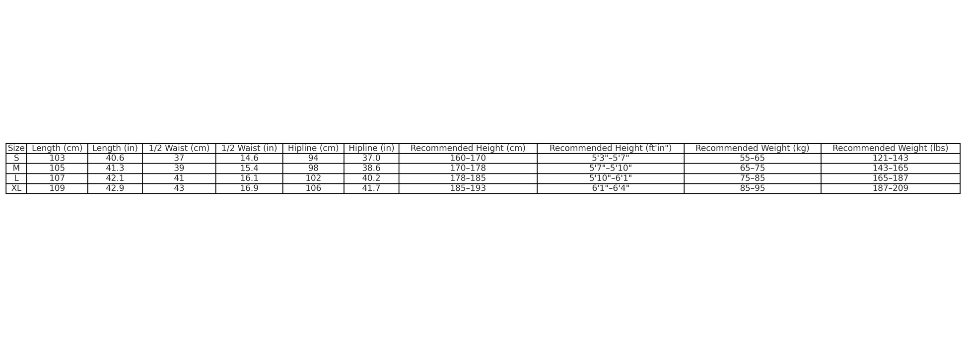 Le tableau des tailles pour cet article se trouve dans la dernière image de la galerie de produits.