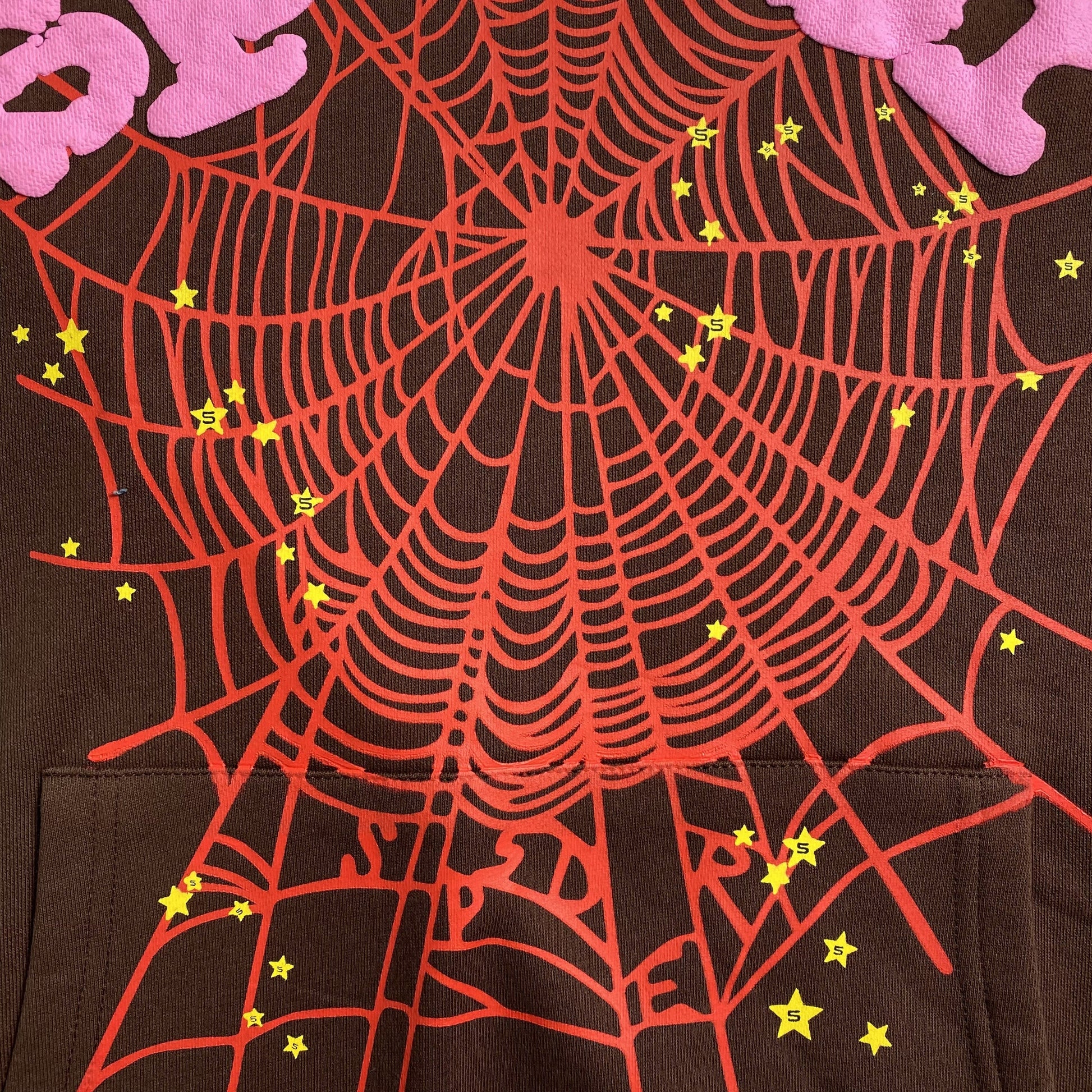 Arborant le logo et le motif emblématiques SP5DER inspirés du web sur un fond marron profond, ce sweat à capuche incarne l'esthétique streetwear moderne avec une touche d'originalité. Doté d'une capuche confortable et de poignets côtelés, il allie praticité et style affirmé.