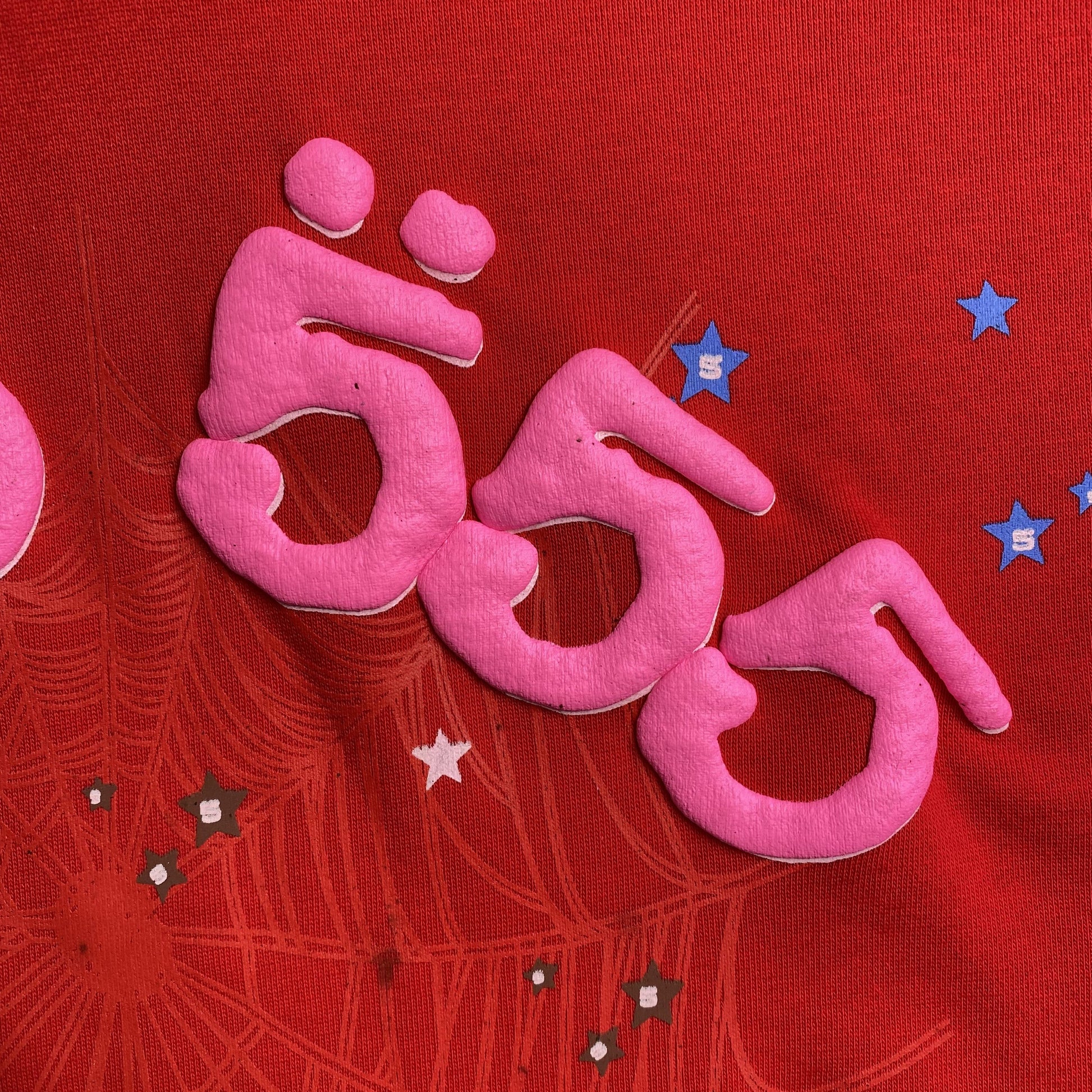 SP5DER WORLDWIDE RED ANGEL NUMÉRO 555 SWEAT À CAPUCHE ROUGE