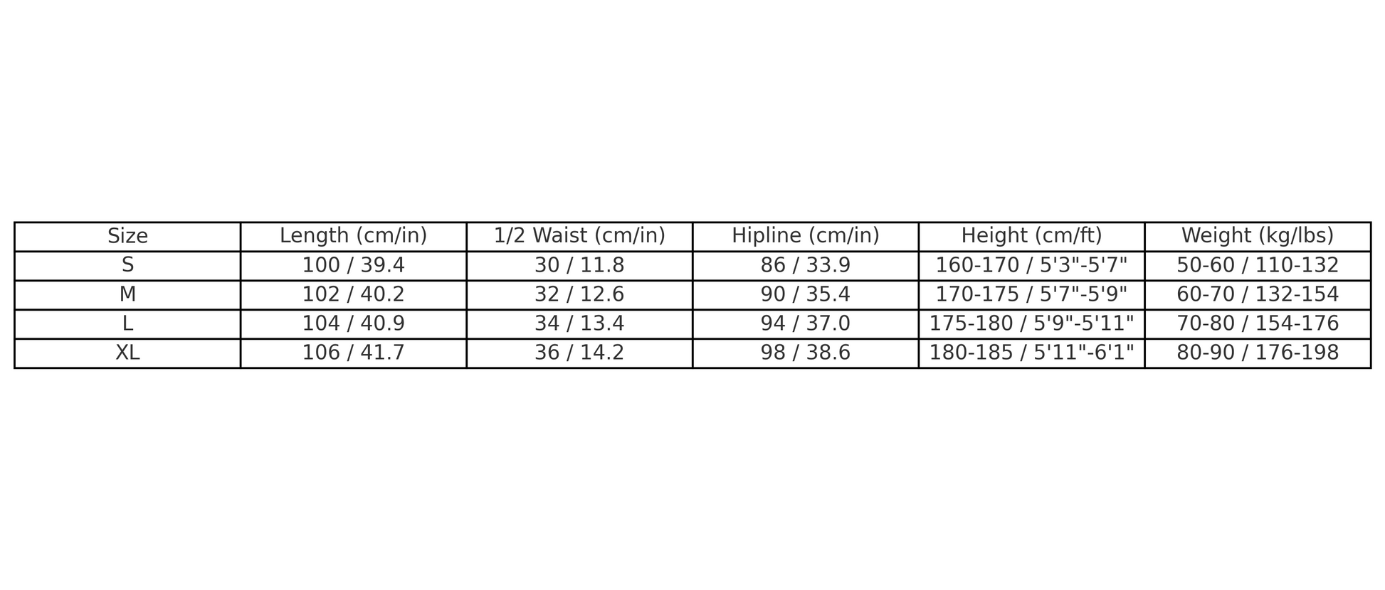 - Ceinture et poignets élastiques : assurent un ajustement sûr et flexible.