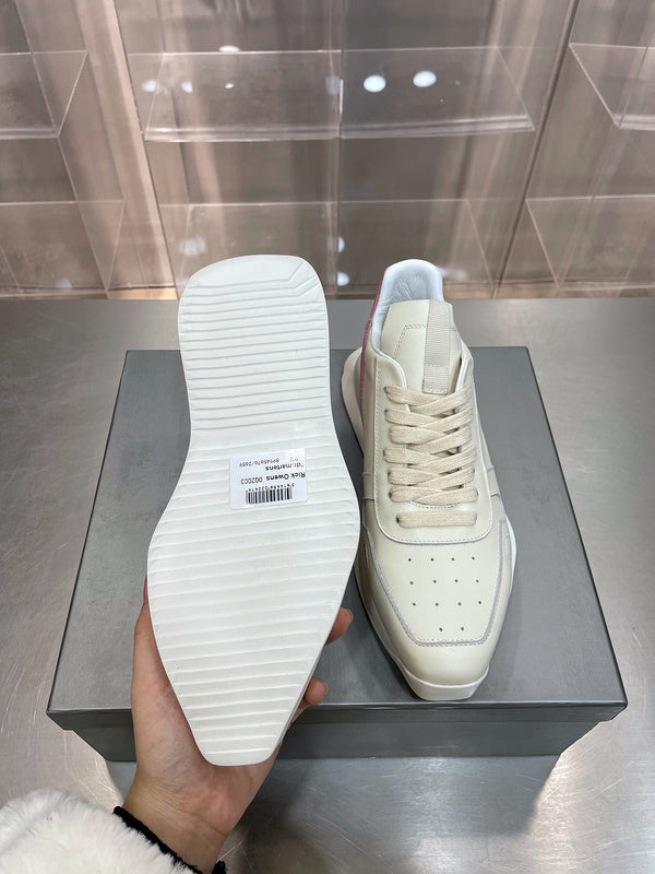 Ces baskets arborent une élégante empeigne en cuir blanc cassé, subtilement contrastée par un empiècement rose tendre au talon. Cette combinaison crée une esthétique sophistiquée et captivante. Le cuir de haute qualité garantit durabilité et confort luxueux, tandis que le design minimaliste et les lignes épurées apportent une touche d'élégance moderne. De discrètes perforations sur l'avant-pied optimisent la respirabilité et ajoutent une note raffinée.