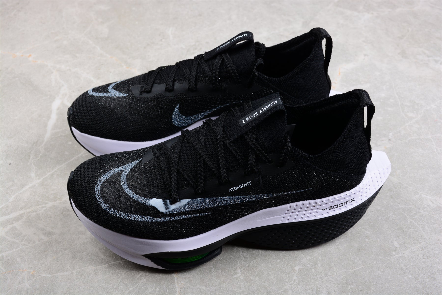 Découvrez la Nike Zoom Alphafly NEXT% 2, le summum de l'innovation pour les coureurs d'élite qui cherchent à repousser leurs limites. Ce modèle arbore un élégant coloris noir et blanc, alliant sophistication et performance. Son empeigne est conçue en AtomKnit, une matière technique légère, respirante et ajustée, qui réduit l'humidité et améliore le confort lors des entraînements les plus intenses.